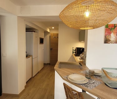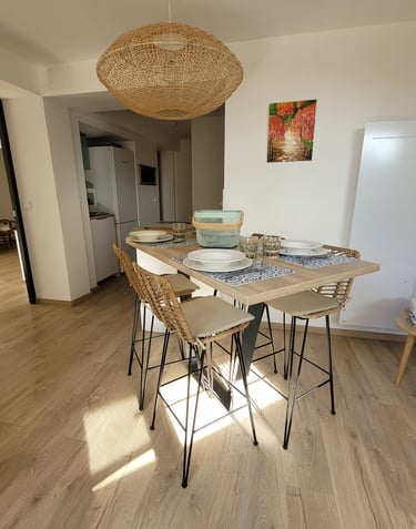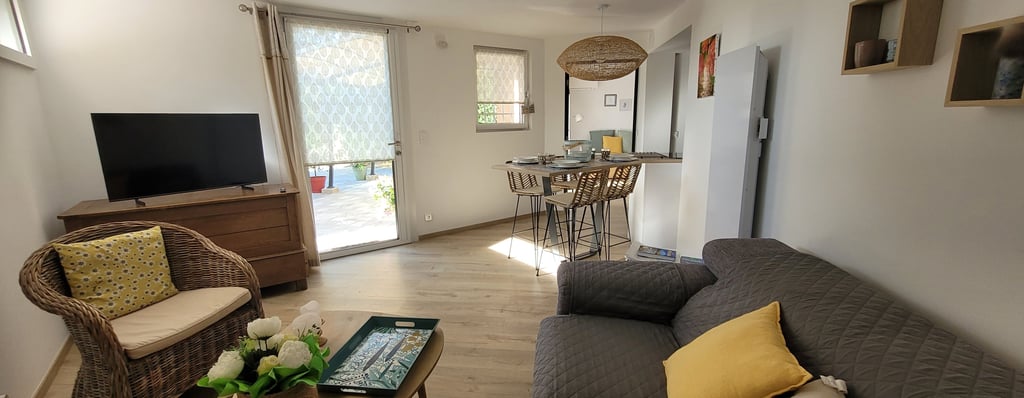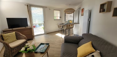 Votre gîte, plein de charme, a été décoré avec soin, aménagé avec des espaces extérieurs privatisés pour votre plus grand confort. De plein pied & d'orientation sud / sud est, cet appartement de 3 pièces ( 53 m2 ) est entièrement indépendant et peut accueillir une famille avec 2 enfants.
